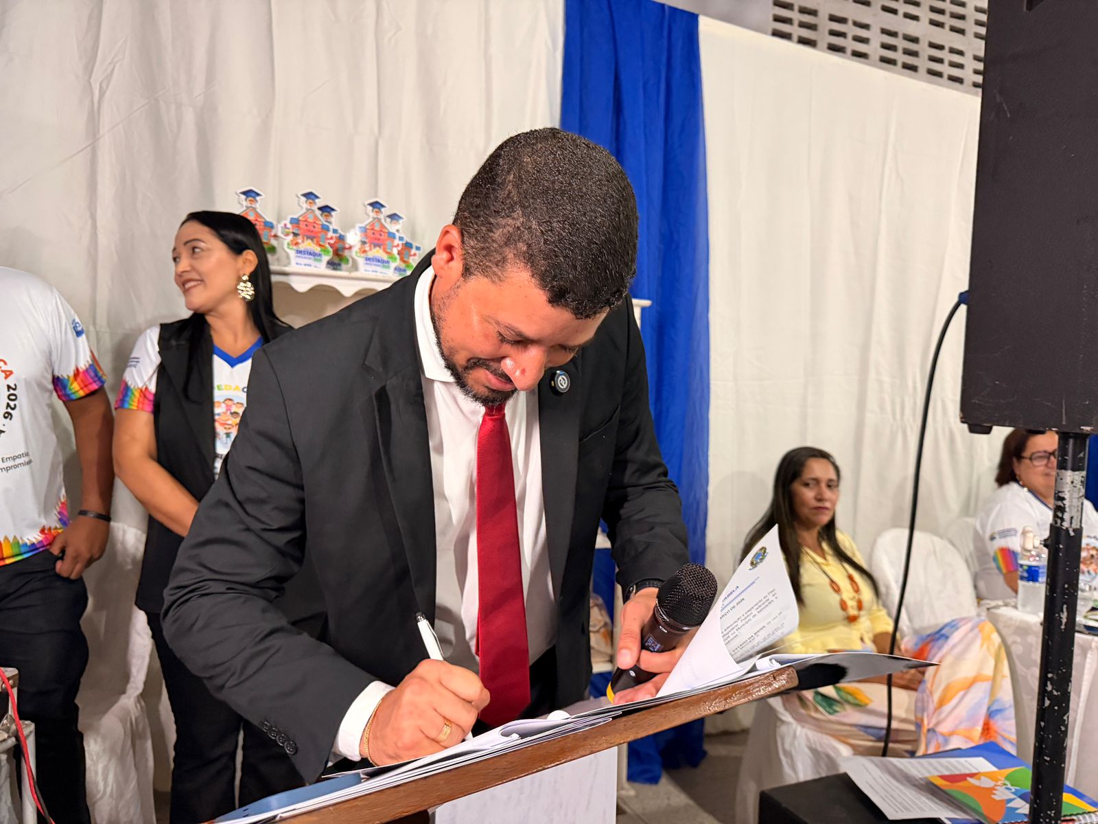 Durante o evento, o prefeito ainda sancionou o projeto de lei que denominou o Colégio Municipal Professora Denise Santos Ferreira, em homenagem à memória, à história e ao legado construído pela educadora na educação do município.